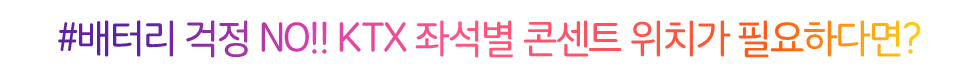 핸드폰 배터리가 없어서 ‘ 열차에서 충전해야지’ 하고 열차를 탔는데 콘센트가 없어서 핸드폰 없이 지루한 KTX 이용을 해보신 분들이 꽤 계실 것 같아요!