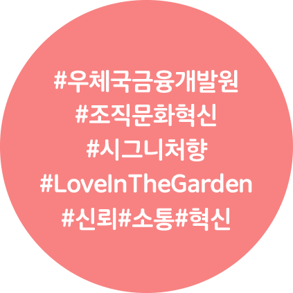 우체국금융개발원은 직원들의 참여와 소통을 바탕으로 조직문화 혁신을 이어가고 있다. 제1기 조직문화혁신단의 소통분과는 직원들의 참여와 투표를 통해 금융원의 시그니처 향인 ‘Love In The Garden’ 향을 만들었다. ‘Love In The Garden’은 싱그러운 풀잎 향을 기반으로 자연 속에서 느낄 수 있는 편안함과 평온함을 표현했다. 또한 금융원 노사의 핵심 가치인 ‘신뢰, 사랑, 소통, 화합’을 상징하는 의미도 담았다.