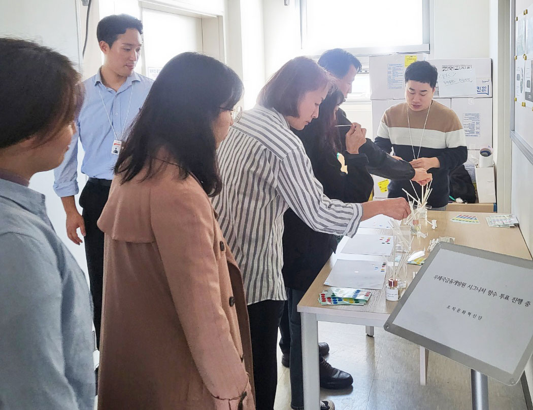 소통분과는 조직문화혁신단원들과 함께 워크숍에서 다양한 향을 직접 체험하고 금융원에 어울리는 향에 대한 논의를 나누었다. 이후 본사 설문조사를 통해 직원들의 의견을 취합하여 최종 향을 선정하였고 향수 제작 전문업체와 협력하여 금융원의 시그니처 향을 완성시켰다.